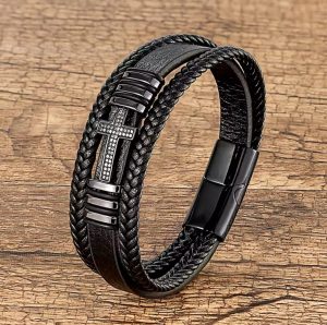 ✅ Diseño que activa tu memoria emocional: La cruz con strass simboliza protección y sacrificio —un símbolo que tu mente asocia instantáneamente con guía, victoria y fortaleza. El cuero trenzado añade textura, como si tu fe estuviera tejida en cada detalle.