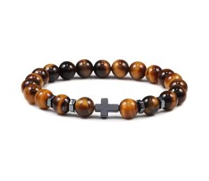 ✅ Diseño que activa tu memoria emocional: Cada color y material simboliza un aspecto de tu fe —turquesa (paz), blanco (pureza), ojo de tigre (fuerza), lava (protección), madera (autenticidad). La cruz central añade poder, como si tu fe estuviera anclada en lo eterno.