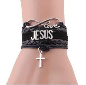 Este brazalete de cuero trenzado con la palabra “JESÚS” y símbolo de infinito no es solo un accesorio… es una declaración de amor eterno. El diseño combina el amor sin fin de Dios (el infinito) con el nombre que todo lo puede — “Porque en él vivimos, y nos movemos, y somos” (Hechos 17:28).